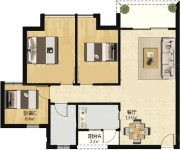 【户型】三房两厅1卫
